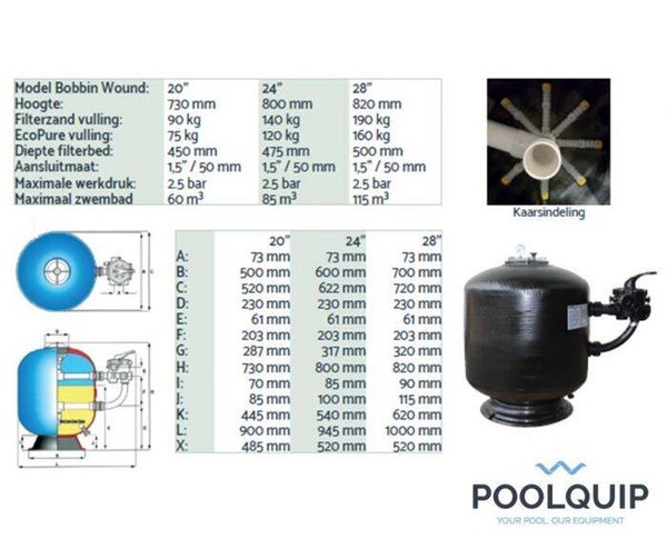 De Blackline van Waterco is een gewikkelde sidemountfilter van UV bestendig polyester.